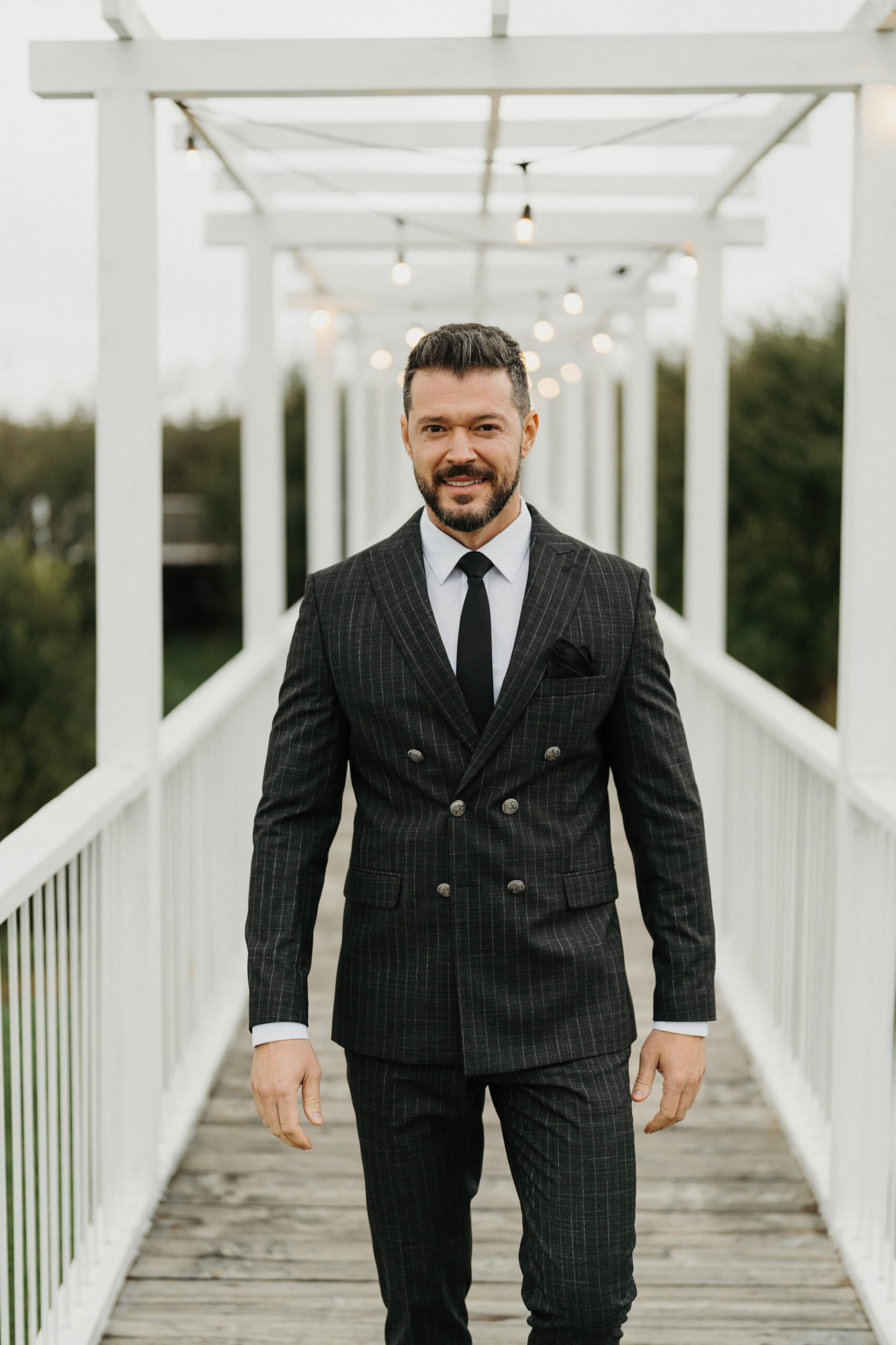 Un costum care redefinește stilul masculin printr-un design double-breasted impunător, completat de dungi fine verticale care alungesc silueta și adaugă aer sofisticat. Perfect pentru bărbații care apreciază eleganța atemporală, este alegerea ideală pentru evenimente formale, întâlniri business sau apariții memorabile. Materialul este 80% lână și 20% poliester.