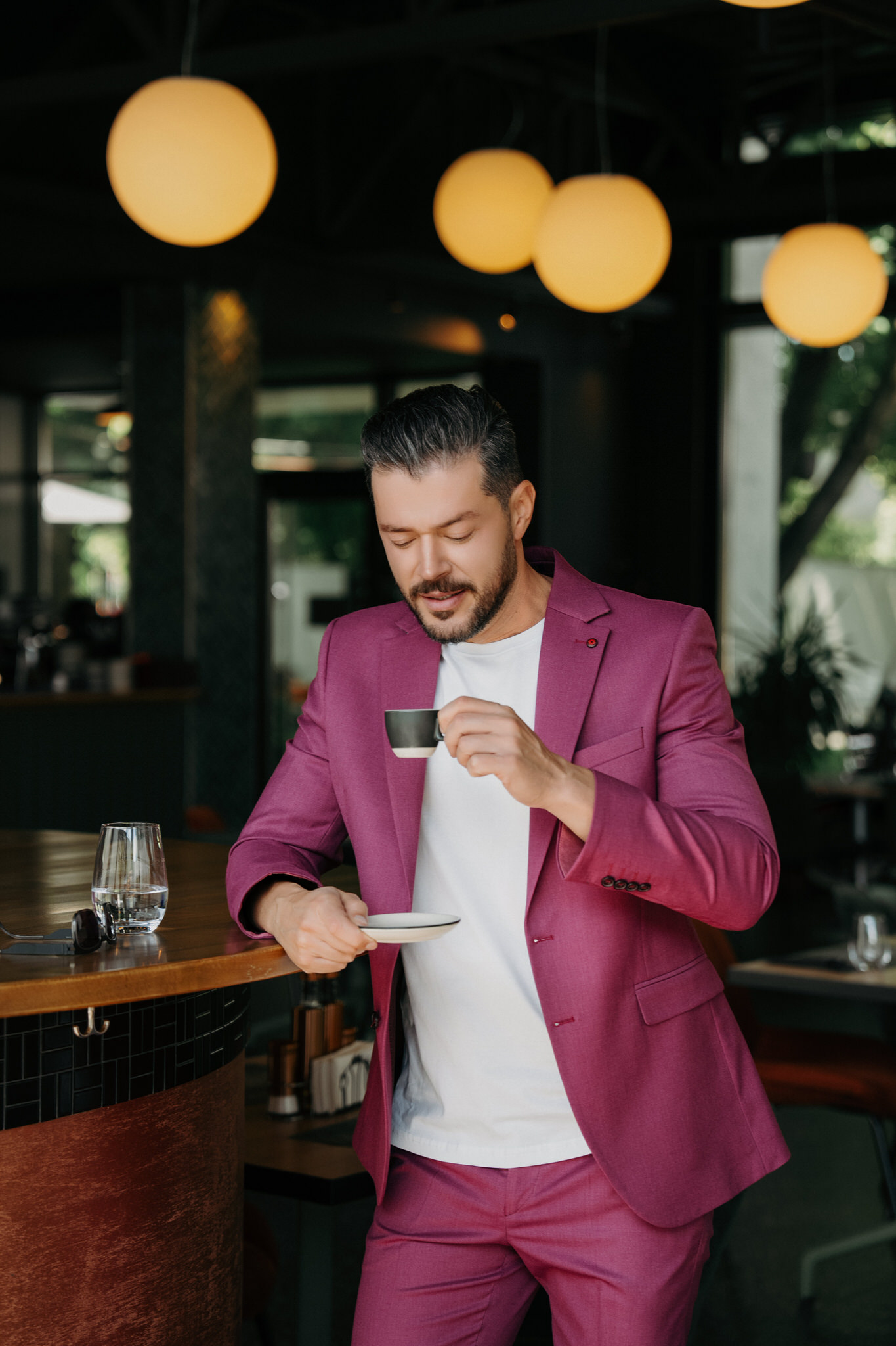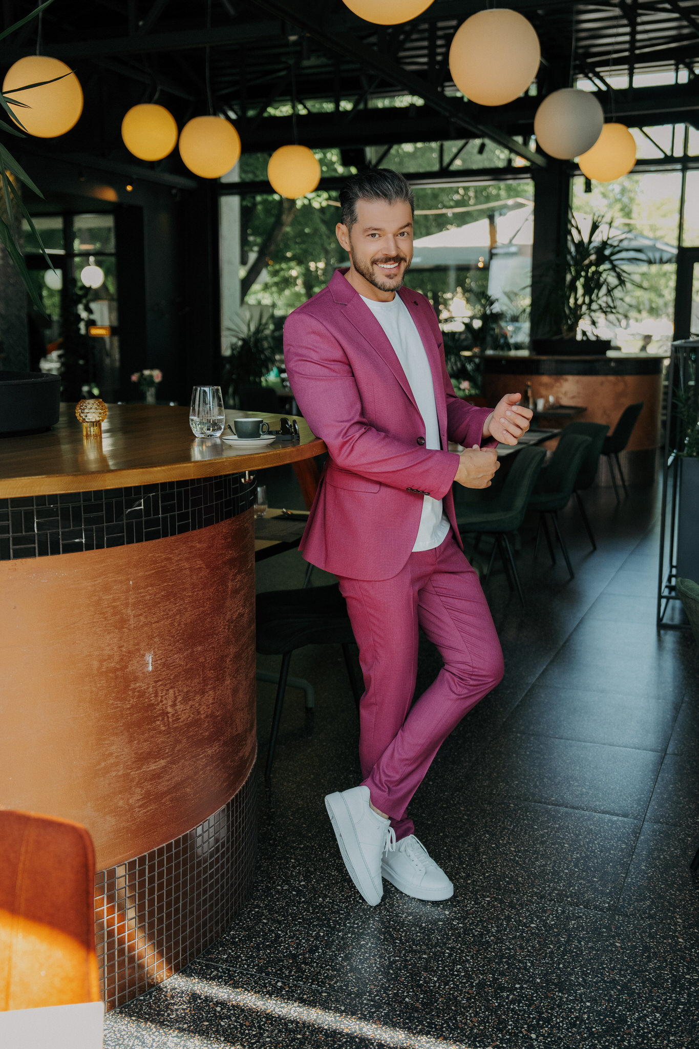 Costum casual Fuchsia Bold pentru bărbați – nuanță vibrantă